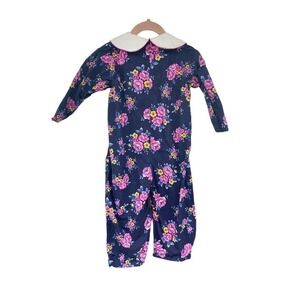 Nautica Baby Girl Floral Navy Blue Long Sleeve Jumpsuits Peter Pan Collar 2T-3T?