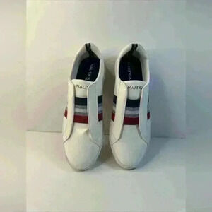 Nautica Bennet White Stripe Band Women’s Memory Foam Casual Slip On Sz 10
