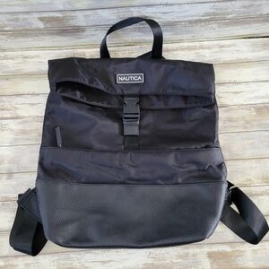 Nautica Black Foldover Large Backpack Bag Adjustable Straps Zip Pocket Buckle