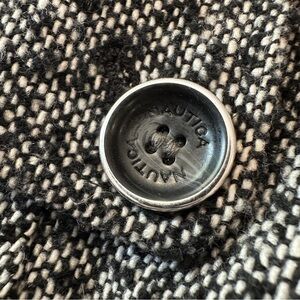 Classic black & white tweed coat by Nautica. Zip front, high collar, and four flap pockets with button detail. Warm, structured, and easy to style for city strolls or office days.