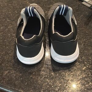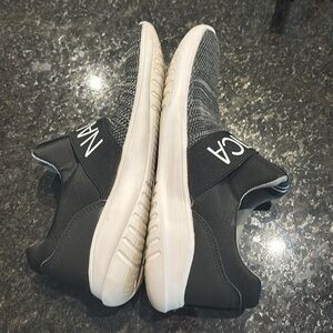 Comfortable slip-on shoes with a knit design. Features a bold black strap with Nautica branding. Easy to wear and stylish.