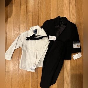 Stylish Nautica kids formal set. Includes black jacket, pants, and white shirt with bow tie. Never worn because it was too big for my son and I missed the return window.