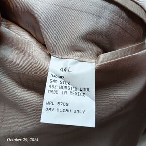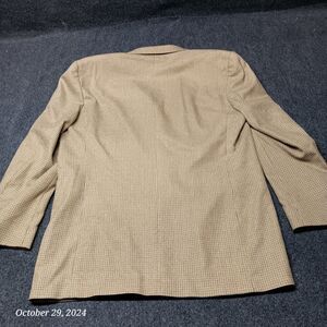 Nautica Blazer Men 44 Long Brown Mini Plaid 3 Button Silk and Worsted Wool
