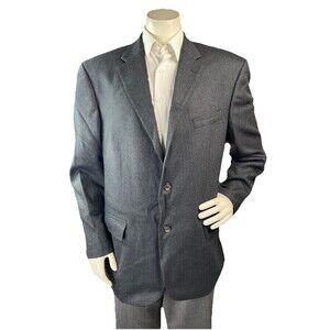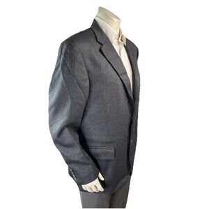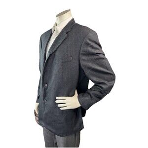Nautica Blazer Men 46R Lambwool Herringbone Tweed Charcoal Gray Sport Coat