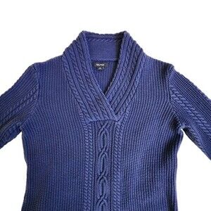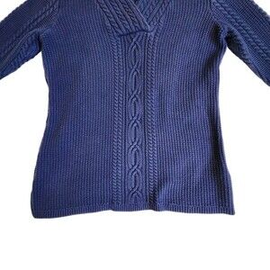 Nautica Blue Chunky Cable Knit V Neck Sweater Size M