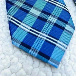 Nautica Blue & White Checkered Plaid Mens 100% Silk Necktie