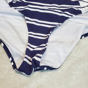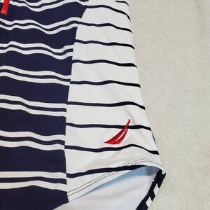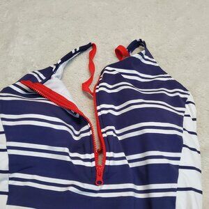 Nautica Blue White Striped Quarter Zip Red Zipper One Piece T Strap Swimsuit XL