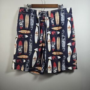 Nautica Blue and Red Swim Trunks with Surfboard Design