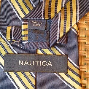 Nautica Blue/Gold Striped Silk Repp 3.75" X 58" Tie