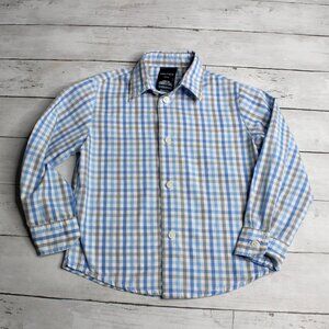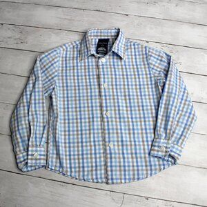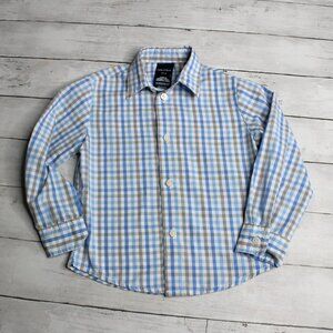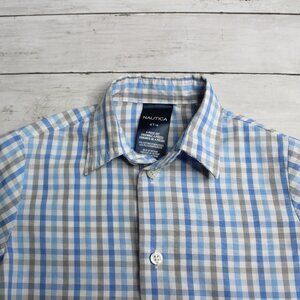 Nautica Boy Button Up Dress Shirt Size 4T 4 Blue White Gray Check
