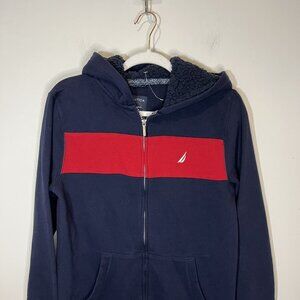 Nautica Boys Full Zip Up Sherpa Lined Hoodie Sweatshirt Navy Red XL 18/20