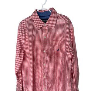Nautica Boys Medium 10/12 Red Gingham Check Long Sleeve Button Down Shirt
