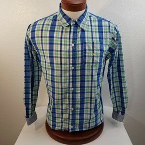 Nautica Boys Men Button Up Shirt Size 18/20 Long Sleeve Plaid Blue Flip Cuff