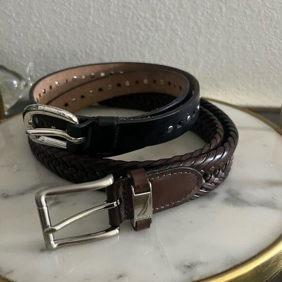 Nautica Braided Men’s Genuine Leather Belt Brown Silver Tone 34 & Black Studded