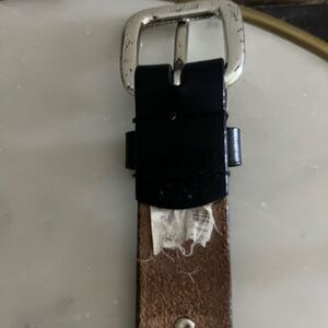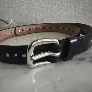 Also an unbranded black leather studded mens belt with a silver tone buckle which is solid brass, the buckle shows some wear