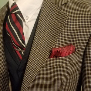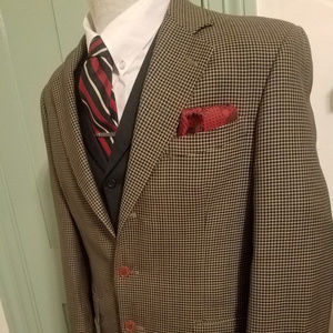 Stylish brown checkered blazer. Classic design with a modern touch. Perfect for formal occasions.