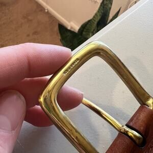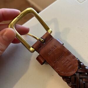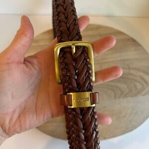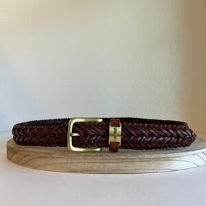 Nautica Brown Genuine Leather Woven Weaved Solid Golden Brass Buckle Belt Size L
