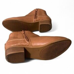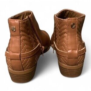 Nautica Brown Leather Look Ankle Boots Adult Size 5 Gold Emblem Quilt