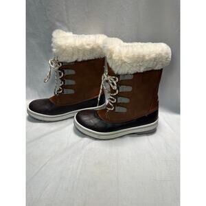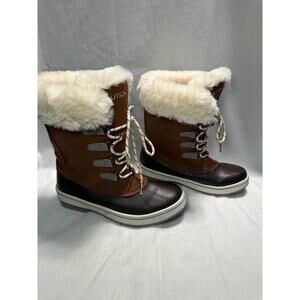 Nautica Brown and Cream Ankle Boots with Fur Trim