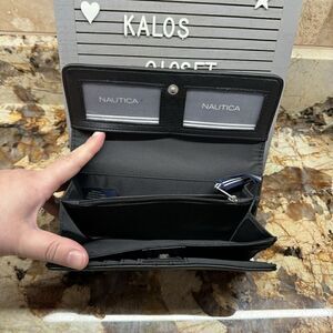 Nautica Buffed Money Manager Deep Sea Dive Black Trifold Wallet NWT