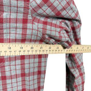 Nautica Button Down Shirt Mens Medium Red Gray Plaid Classic Fit Embroidered