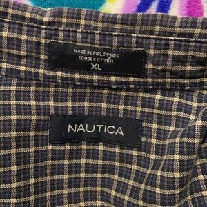 Nautica Button Down Shirt Mens XLS Classic Plaid Long Sleeve Pocket Sail Logo