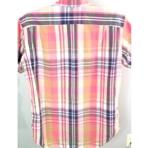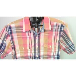 Nautica Button Down Short Sleeve Plaid Shirt Men's Medium Pink, Navy