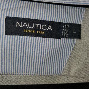 Pre-owned - Nautica Button up shirt. Size Large. Measurements are approximately- Top collar to bottom hem 32 inches and from arm pit to arm pit 23 inches. Please zoom in to photos for a clear visual description. Questions welcomed.