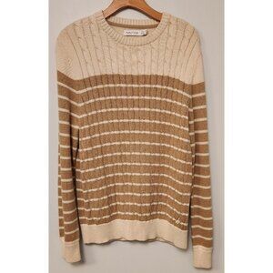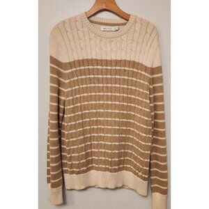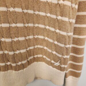 Nautica Mens Cable Knit Pullover Sweater Cream Tan Striped Medium