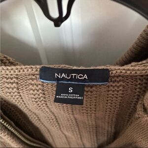 Nautica Cable Knit Zip Hooded Sweater Paddle Brown Size S