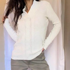 Nautica Cable-knit Cream Cotton Shawl Collar Fisherman Sweater