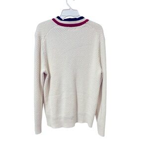 Classic, clean, and timeless — this Nautica men’s cream cotton sweater features signature navy and crimson trim for a preppy, coastal-inspired look. Soft 100% cotton makes it perfect for layering in cooler weather or wearing solo for a crisp, polished vibe.