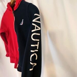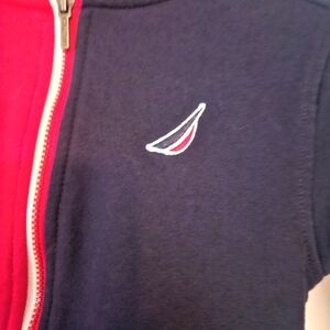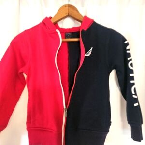 Nautica Childs Size 5 Blue Red Full Zip Sweatshirt Hooded Preppy Classic Summer