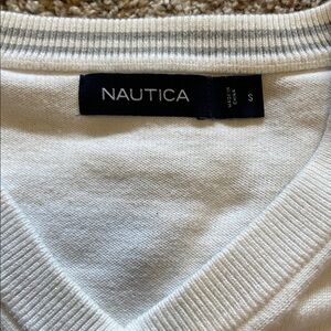 Timeless white V-neck sweater by Nautica. Ideal for versatile styling.