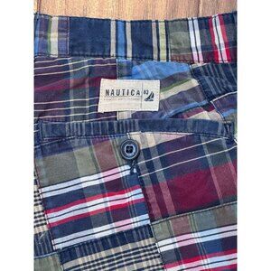 Nautica Clipper Relax Fit Plaid Patchwork Shorts 35W Cotton Blend Multicolor