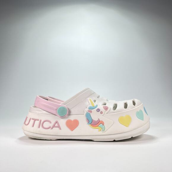 Nautica Clogs White Pink Unicorn Hearts Platform Slip On Shoes Youth Size 13