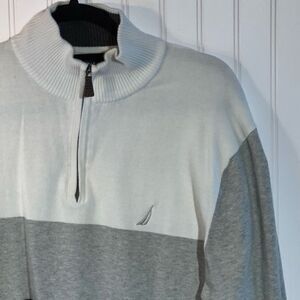 Nautica Color Block Quarter Zip Sweater Mens XLarge White Gray Black Long Sleeve