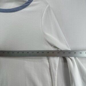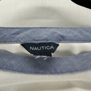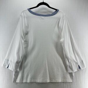 Nautica Cotton Top Womens XL Boat Neck Flip Cuff Chambray Trim 3/4 Sleeve White