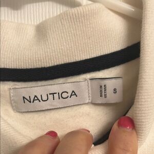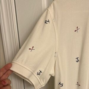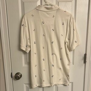 Nautica Cream Cotton Polo Shirt with Nautical Print Short Sleeve Size Small EUC