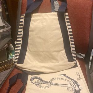 Nautica Cream and Black Striped Anchor Shoulder Bag