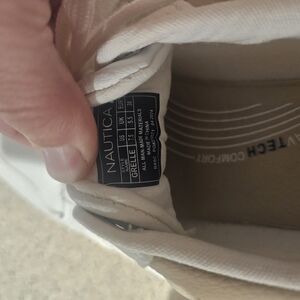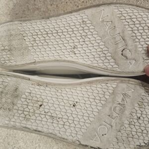 Comfortable Nautica sneakers in cream and tan. Ideal for casual outings.