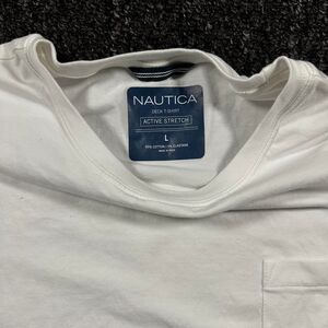 Nautica Deck T-Shirt Men’s Large White Pocket Tee Active Stretch Casual