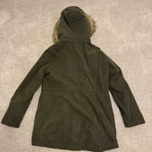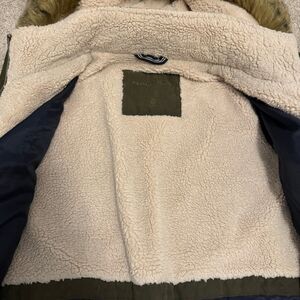 Nautica Drawstring Waist Parka Jacket Removeable Faux Fur Hood Olive Green