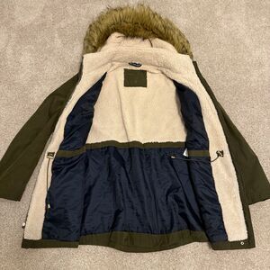 Nautica Drawstring Waist Parka Jacket Removeable Faux Fur Hood Olive Size XL