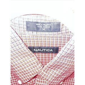 This mens red striped Nautica dress shirt is in great shape! This item comes in a size Medium Armpit to armpit is 23 Armpit to sleeve is 20 Back of collar to hem is 32 Thanks for looking at our item!