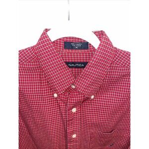 Nautica Dress Shirt Men’s Size Medium Red Striped Button Up Long Sleeve