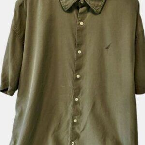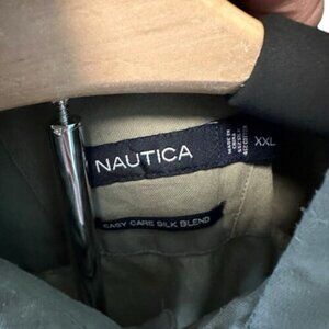 Nautica Easy Care Silk Blend Short Sleeve Collared Shirt Men’s Size XXL Green