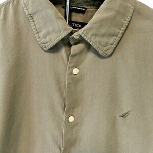 Elevate your travel or casual wardrobe with this Nautica button-up shirt. The shirt features a solid blue color, short sleeves, and a collared neckline with a button-down closure. It is made from a luxurious silk blend fabric that is woven and easy to care for. The shirt has a classic fit, available in size 2XL, and is perfect for men who want to look stylish and comfortable.The shirt is a great addition to any wardrobe, suitable for various occasions. It has a button-down collar style and comes in a regular size type. The shirt is perfect for those who love to travel or dress casually. Get this Nautica shirt today and add a touch of sophistication to your wardrobe.
