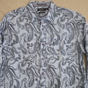 Elevate your style with the Nautica Blue Paisley Men's Shirt. This shirt features a classic paisley design, perfect for any occasion. Experience comfort and sophistication with Nautica's quality craftsmanship.