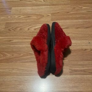 Nautica Fuzzy Red slippers, size 5/6 (textile) 1/2 inch heel Approximate measurements Ask questions and concerns before purchasing.
